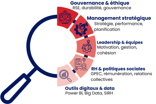 Cette formation permet de développer une expertise complète en gouvernance, management stratégique et leadership, tout en maîtrisant les enjeux RH, la RSE et les outils digitaux.